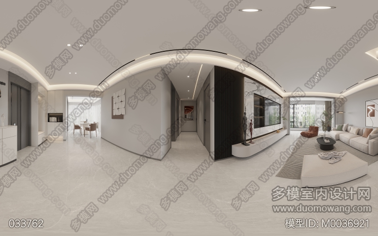 现代无主灯家装5个全景 ID:M0036921