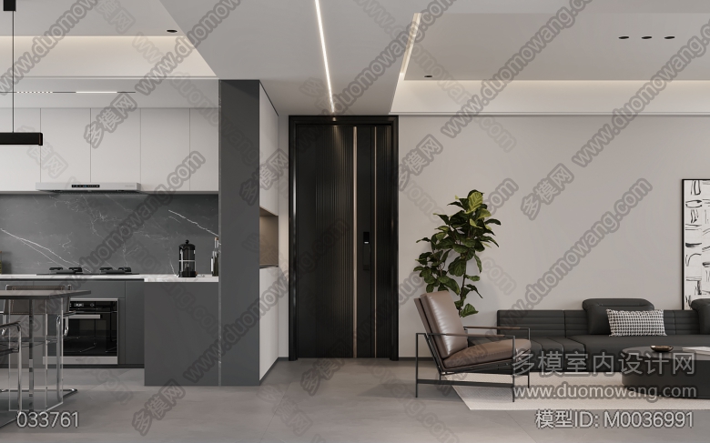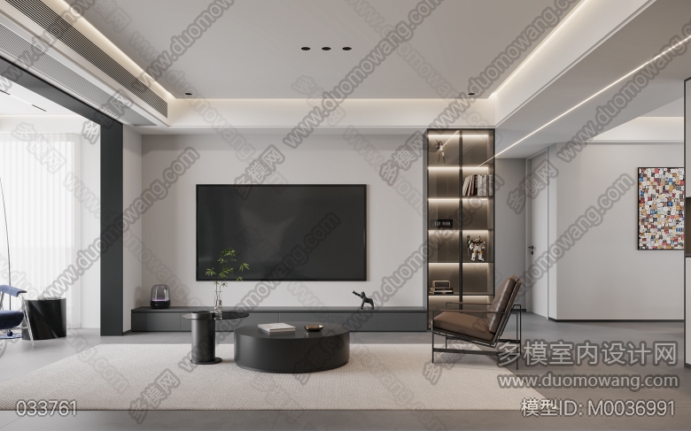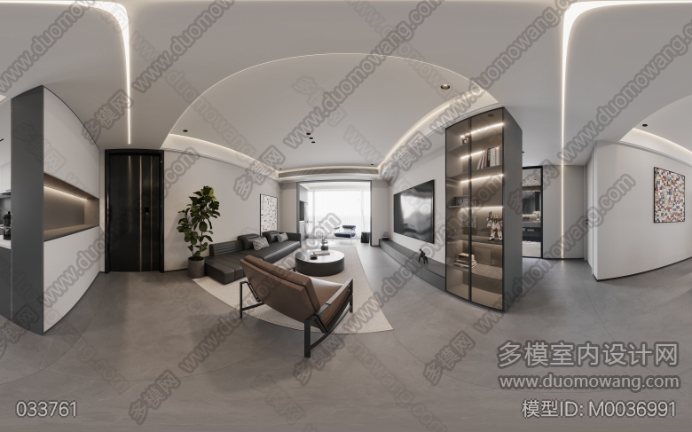 家装现代简约风格客餐厅1个全景,卧室1个全景 ID:M0036991