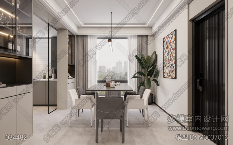 汇福苑现代客餐厅全景+2张特写 ID:M0037016