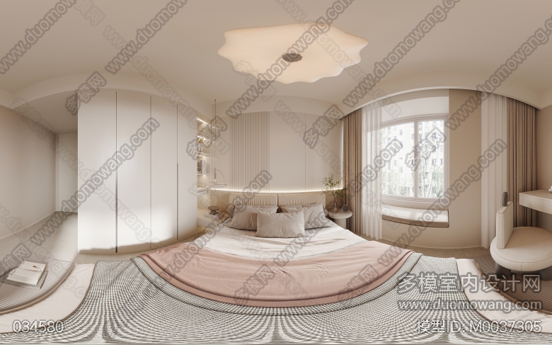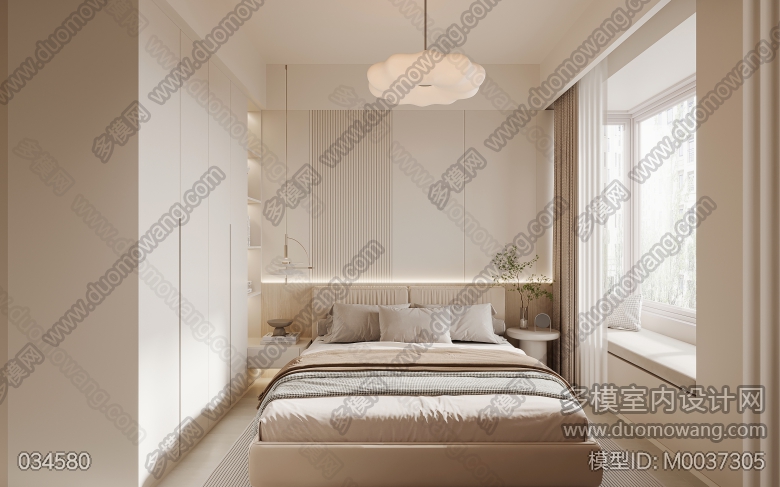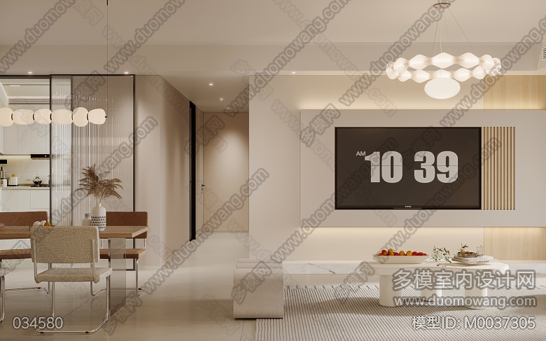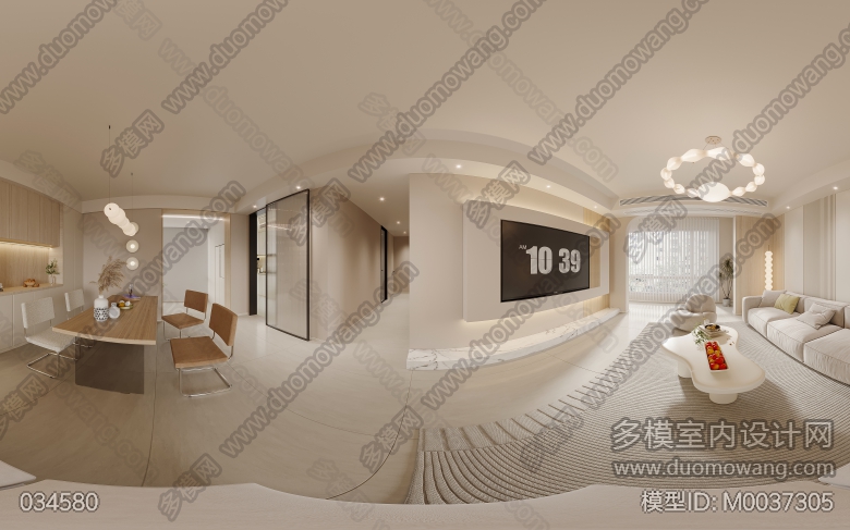 启迪大院现代奶油客餐厅+主卧2全景1单张送3单张 ID:M0037305