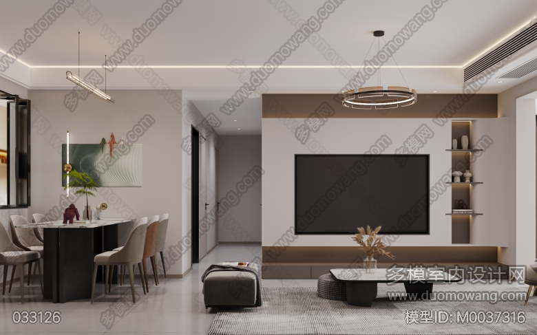 现代风格1个客餐厅3个房间单张 ID:M0037316