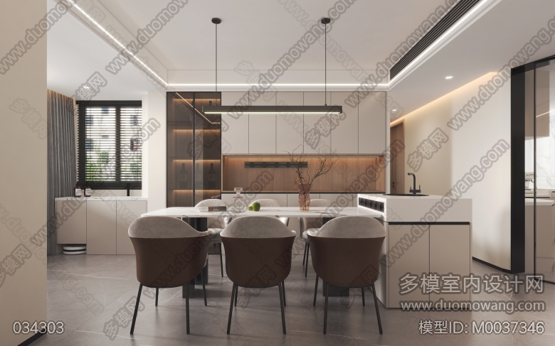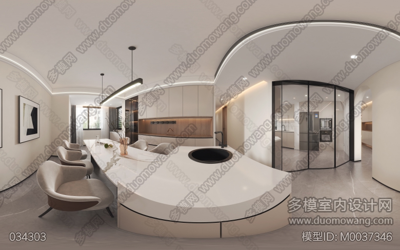 现代客餐厅2全景厨房1单张送2静态 ID:M0037346