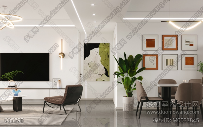 现代客餐厅全景主卧静态 ID:M0037845