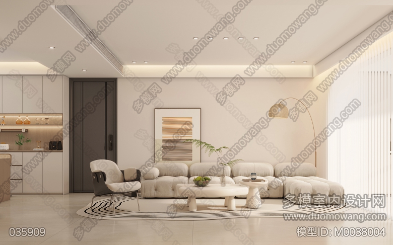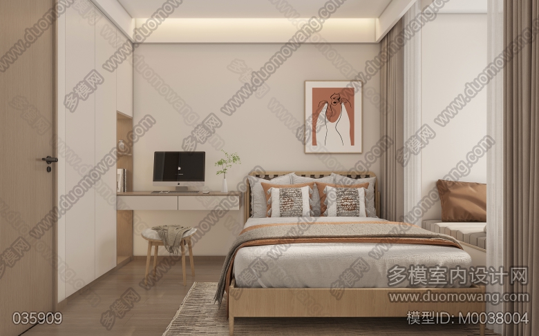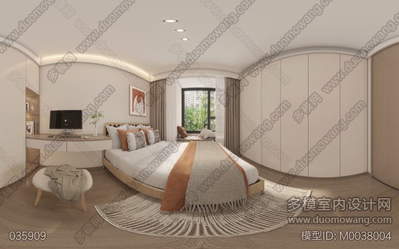 奶油风全屋4个全景加卫生间衣帽间3个单张 ID:M0038004