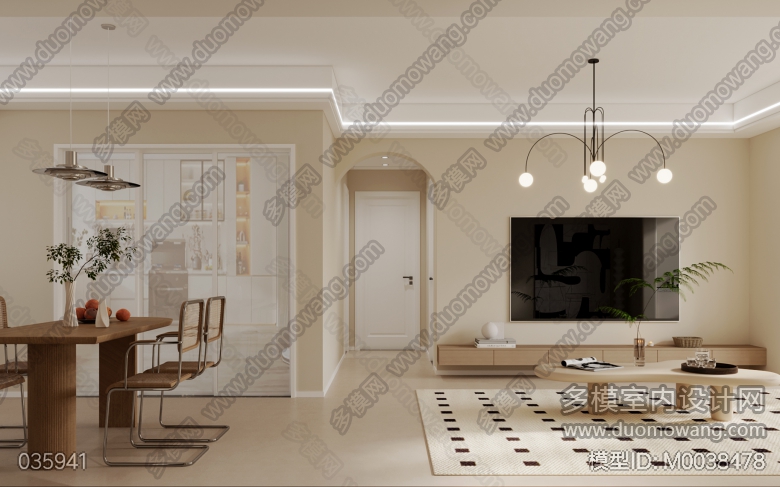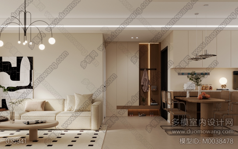 壹方城19栋701室现代客餐厅全景1特写2 ID:M0038478