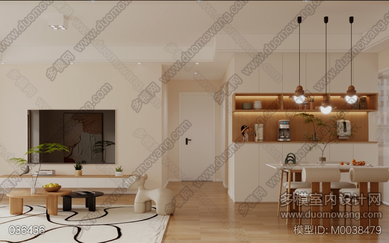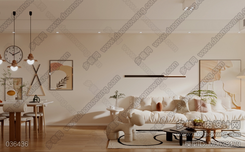 奶油原木客餐厅+主卧全景2特写3 ID:M0038479