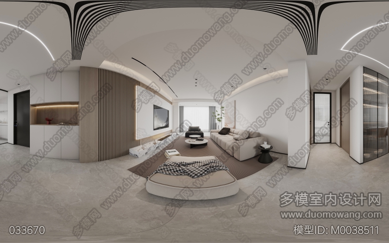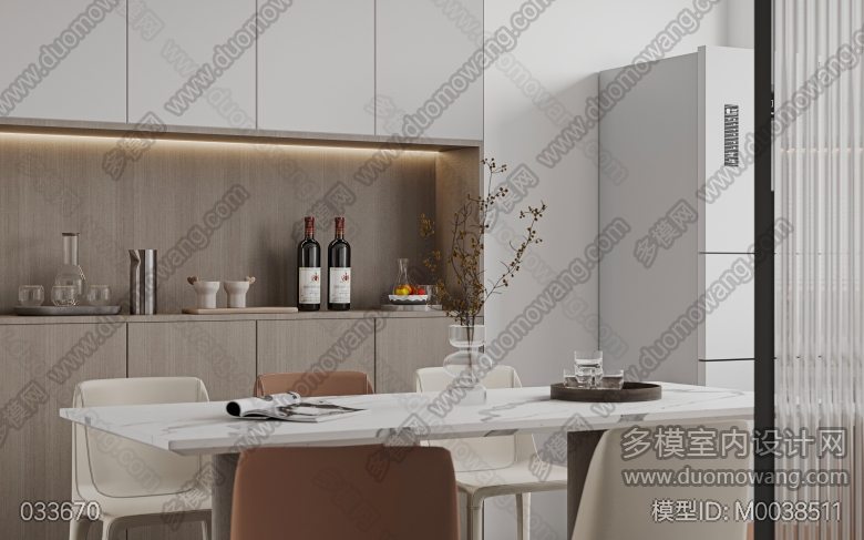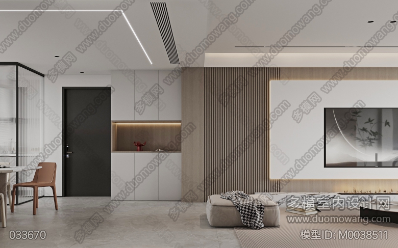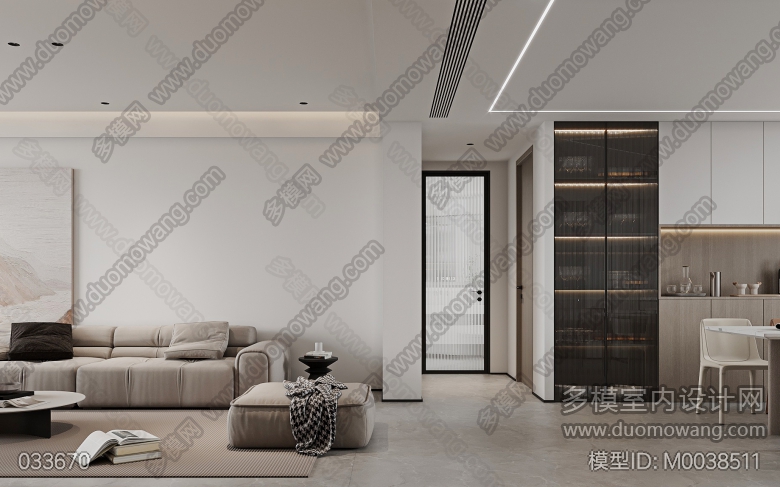 现代简约风格一个客餐厅全景(赠送两张静态) ID:M0038511