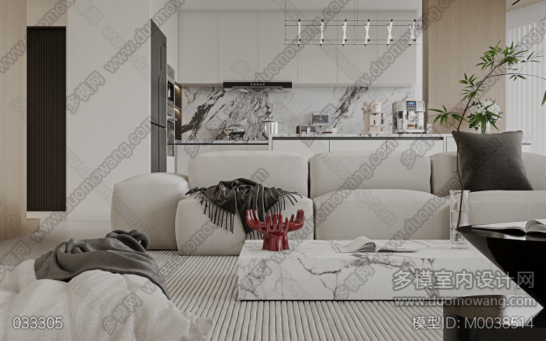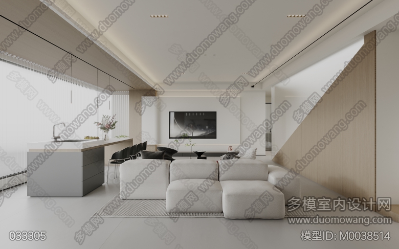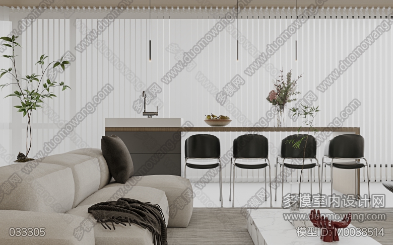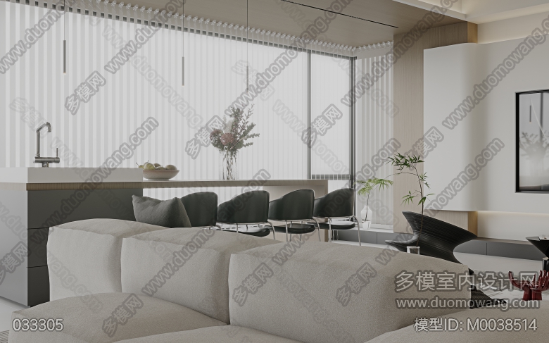 现代极简客餐厅全景1,入户单张1,主卧室单张1(客餐厅全景送2个广用单张) ID:M0038514