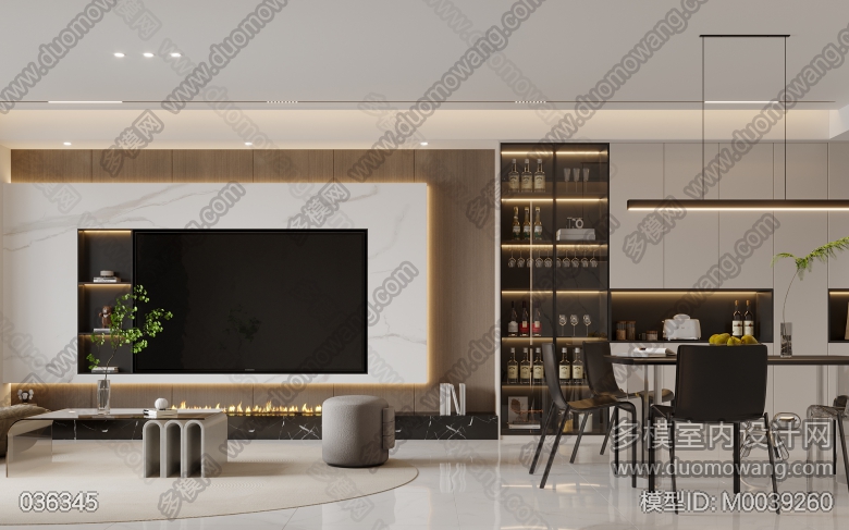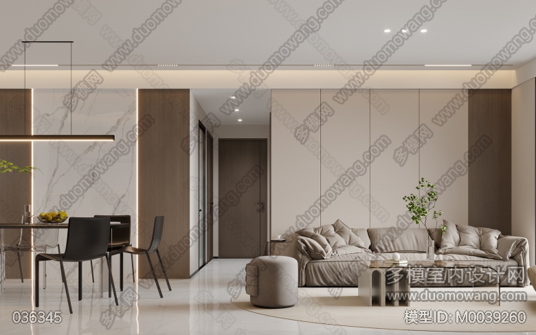 现代风格客餐厅+卧室全景2个 送单张3张 ID:M0039260
