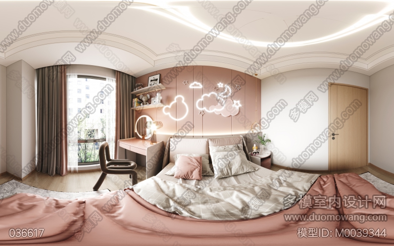 现代风格样板房卧室2个全景,送2个特写单张 ID:M0039344