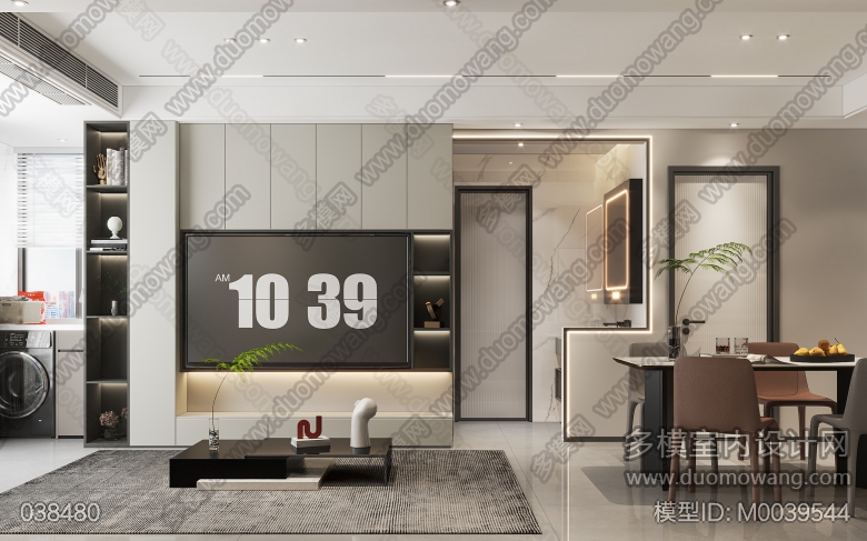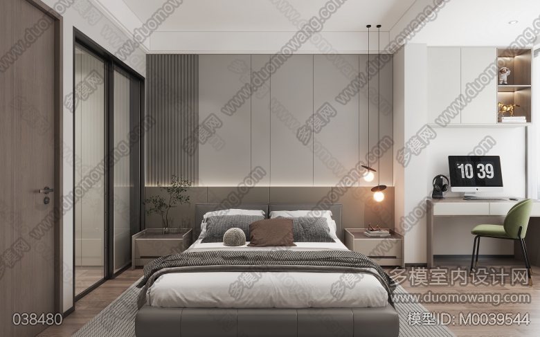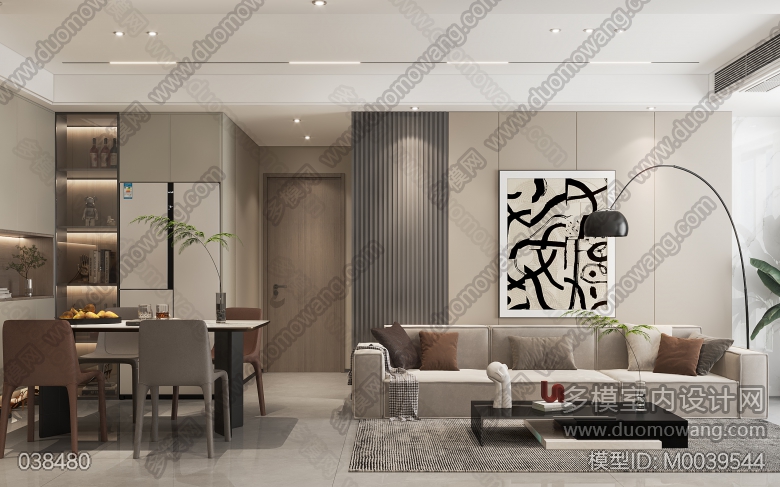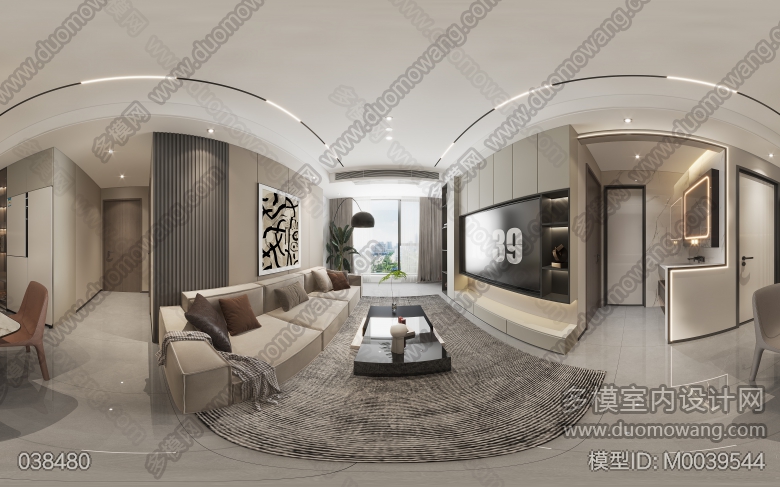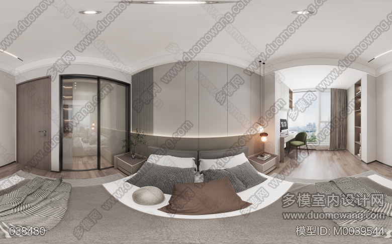 家装现代风格客餐厅1个全景,卧室1个全景 ID:M0039544