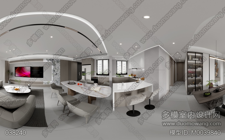 东方颂客餐厅茶室开放式厨房一个全景,送3张静态,4张图 ID:M0039840