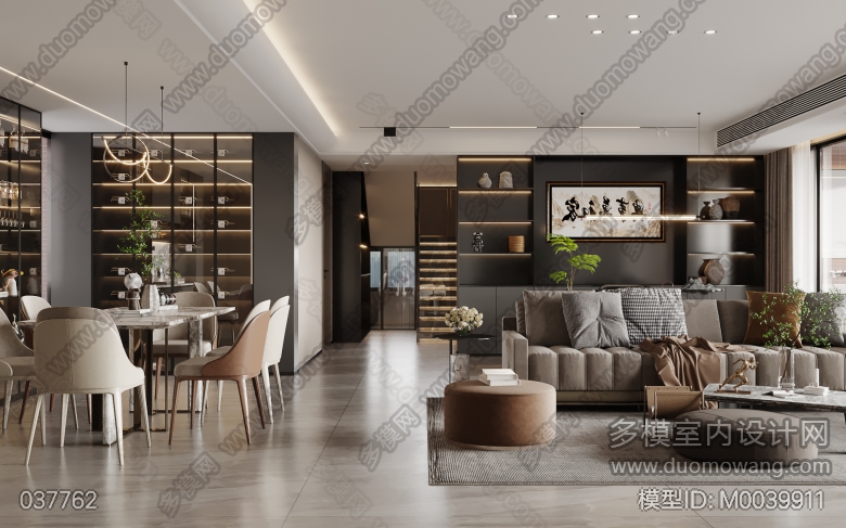 现代客餐厅+门厅+厨房+阳台+男孩房+男孩房卫生间+楼梯间+现代主卧+主卫+衣帽间+健身房+书房+女孩房 ID:M0039911