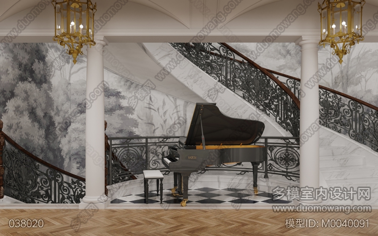 法式风格门厅,楼梯间两个单张 ID:M0040091