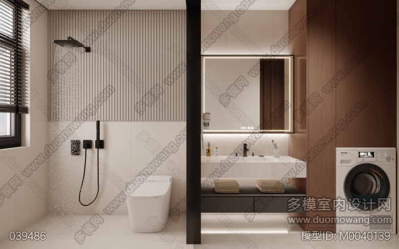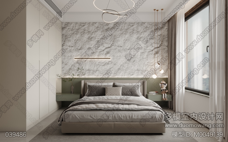 现代主卧+主卫+次卧+小卧室+次卫改图 ID:M0040139