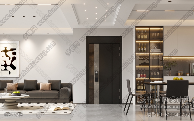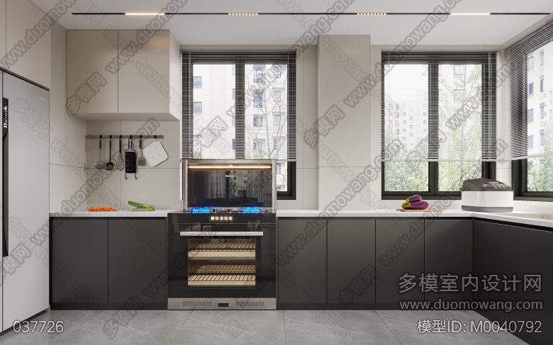 翼天首府客餐厅+主卧全景、厨房单张 ID:M0040792