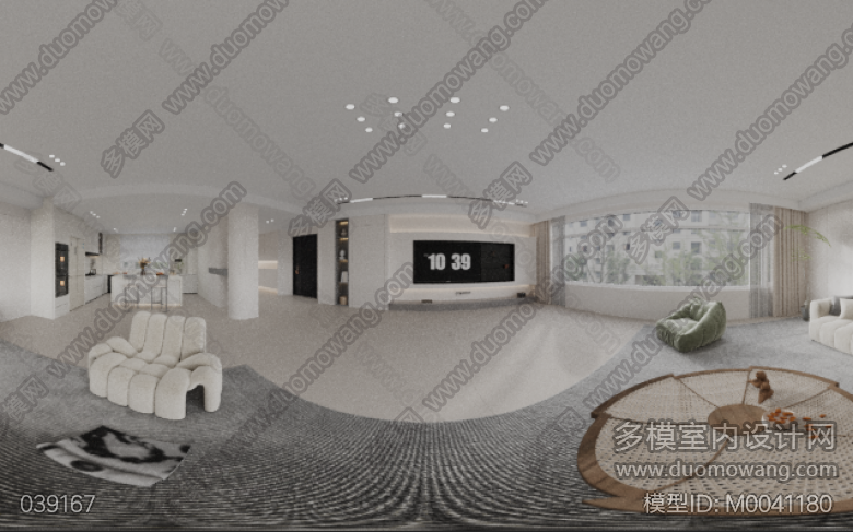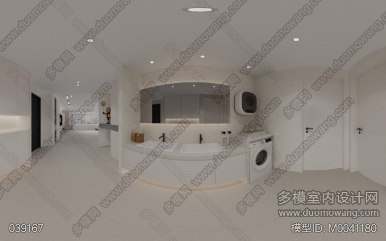 会所 奶油风大厅+过道全景 办公室单张一张 ID:M0041180