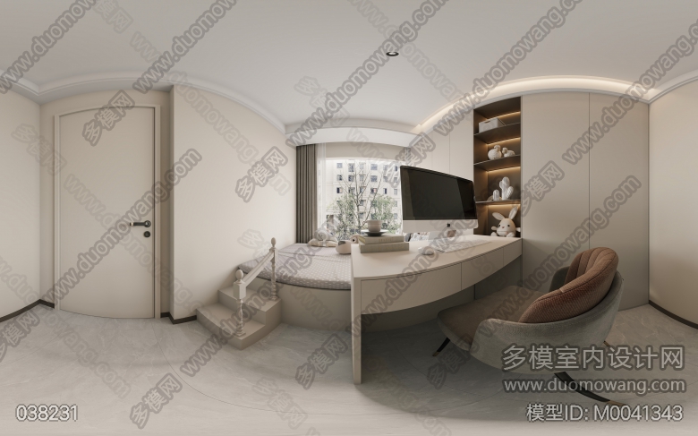 现代客餐厅+茶室+厨房+次卧+主卧+儿童房+主卫 ID:M0041343