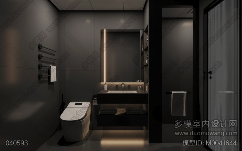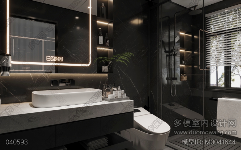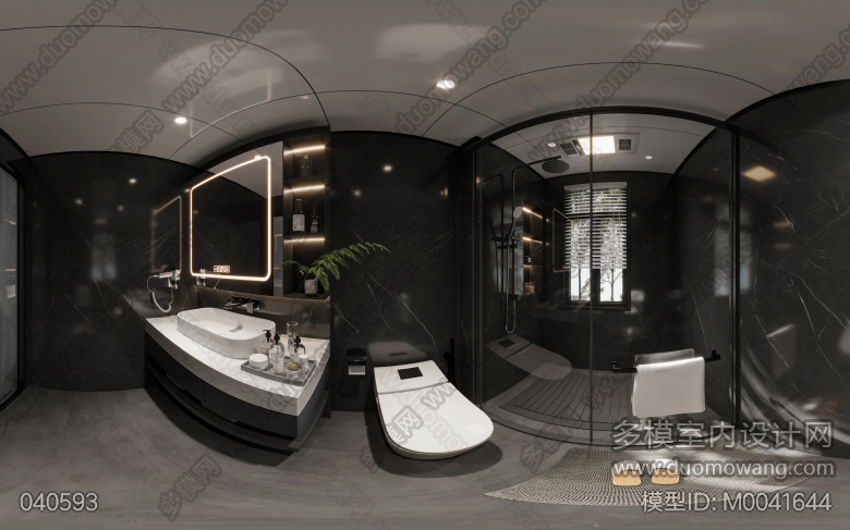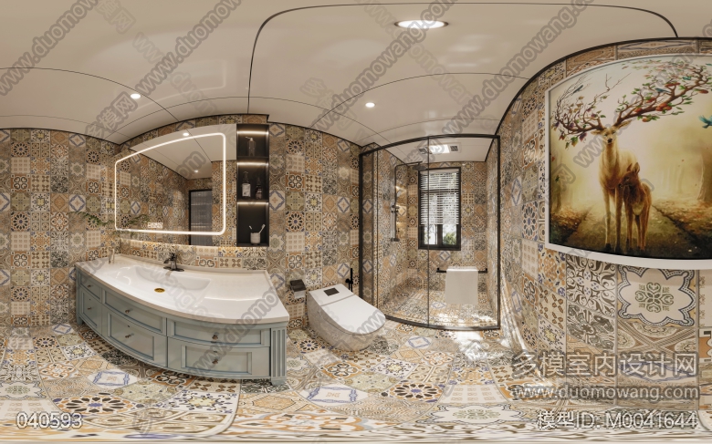 两个现代轻奢卫生间全景,一个地中海风格卫生间全景,送三张静态 ID:M0041644