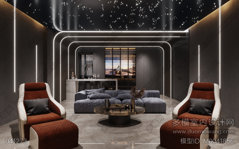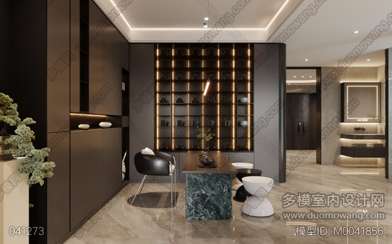 现代餐厅+厨房+影音室+二层套房+套卫+儿童房+儿童房卫生间+二层客房+一层客房+门厅+客厅+茶室+衣帽间+主卧+主卫 ID:M0041856