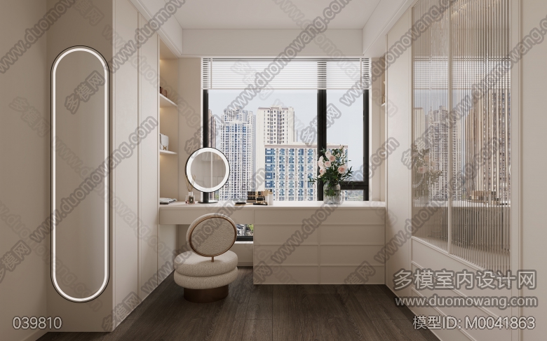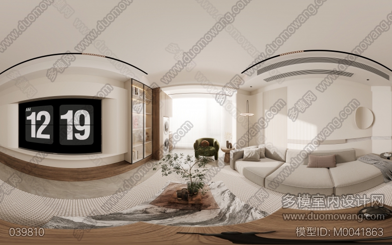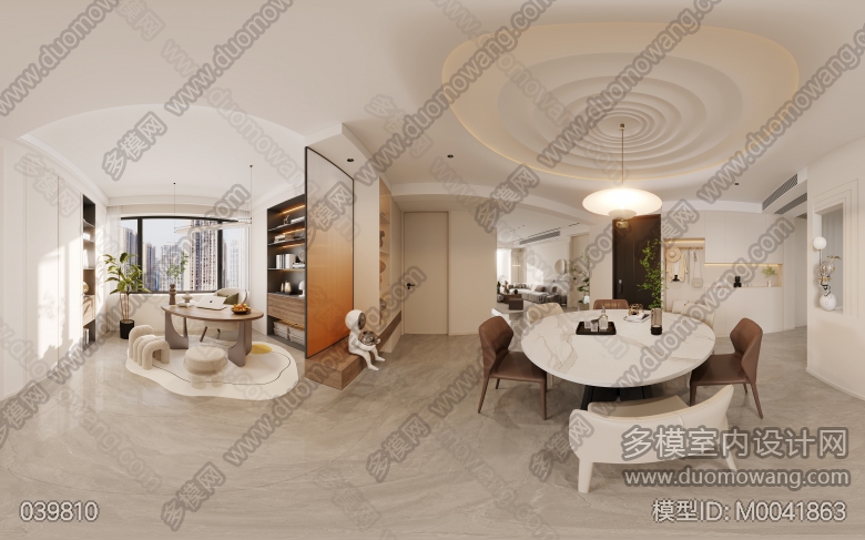 现代奶油风格5个全景,客餐厅+主卧室+儿童房+衣帽间=5个全景和5个单张 ID:M0041863