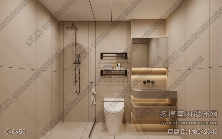 现代奶油风家装2个房间全景 其他(茶室 卫生间)4张单张 ID:M0042342