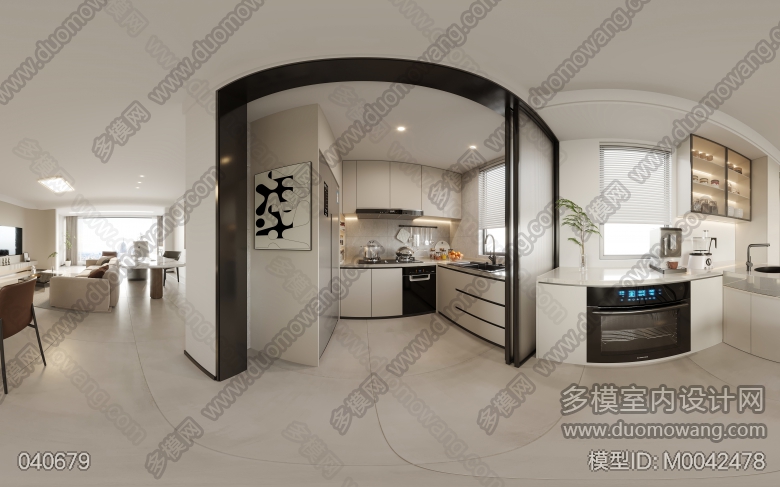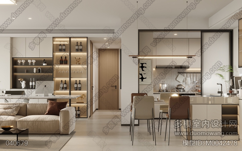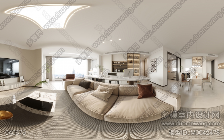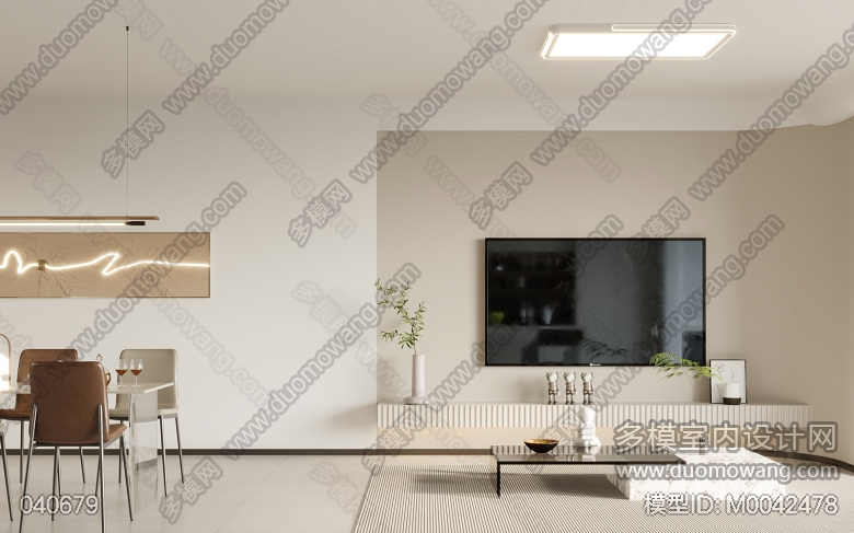 现代客厅+餐厅全景,每个全景送1张单张特写 ID:M0042478