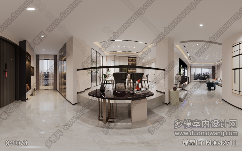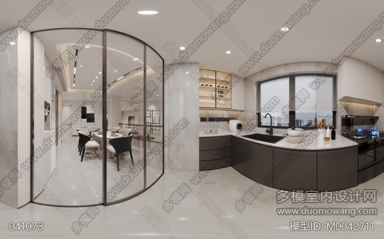 现代客餐厅+玄关+厨房+次卫 ID:M0042711