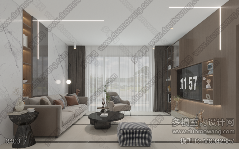 现代家装卧室单张1,客厅单张1,餐厅单张1 ID:M0042887