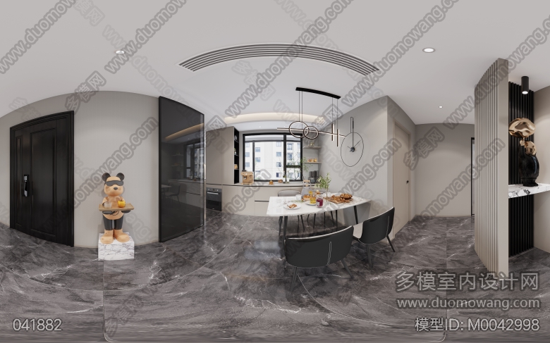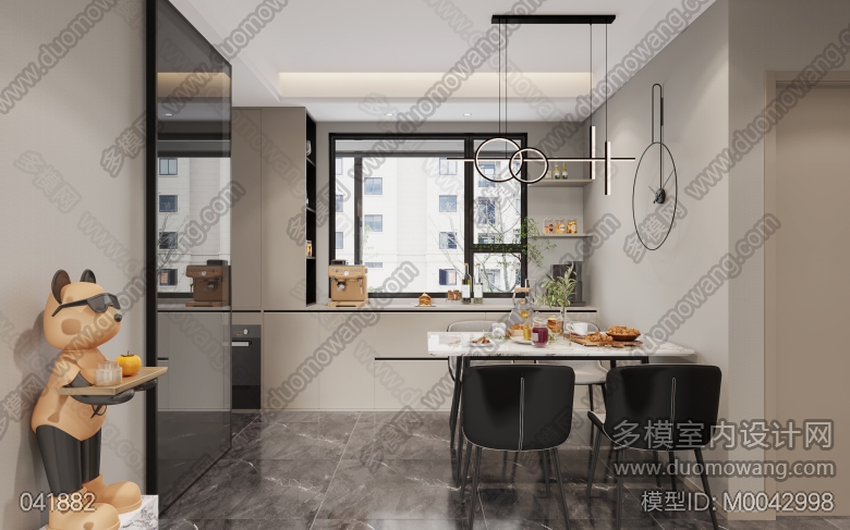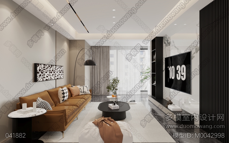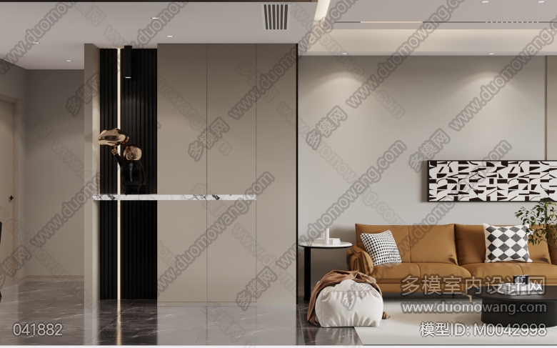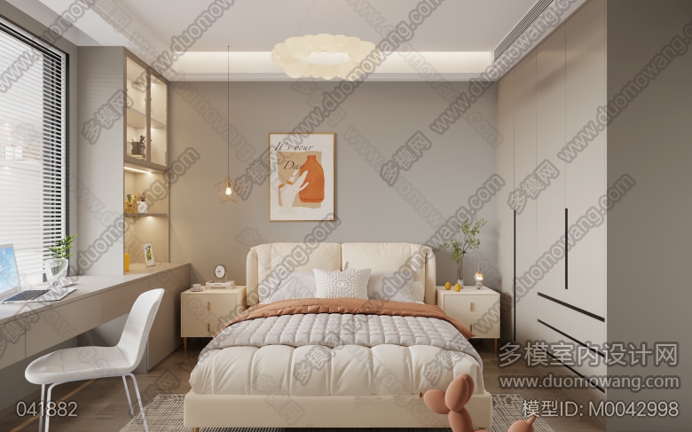 现代客餐厅+厨房+主卧+次卧+书房+主卫+公卫 ID:M0042998