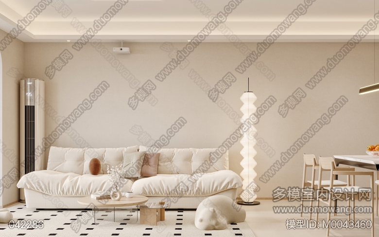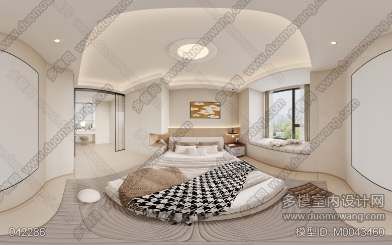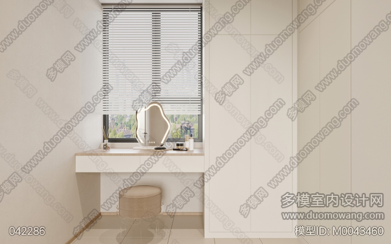 奶油风客餐厅全景+主卧全景+衣帽间单张+3张特写 ID:M0043460