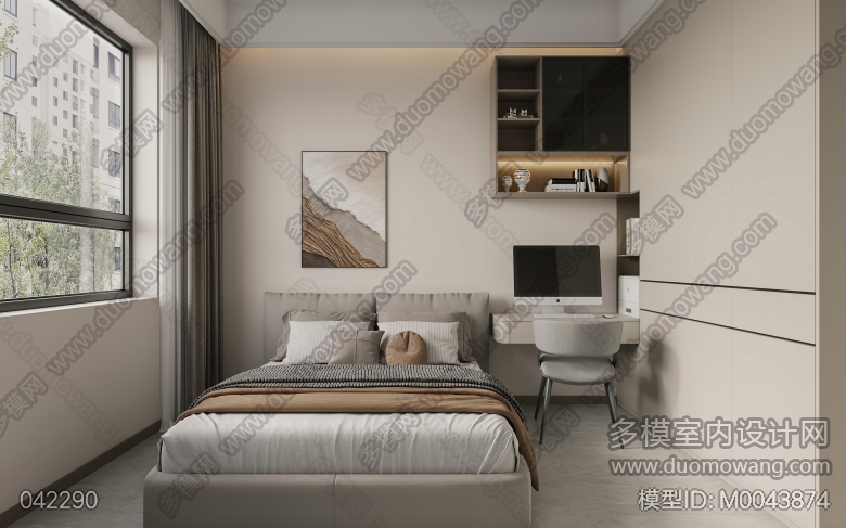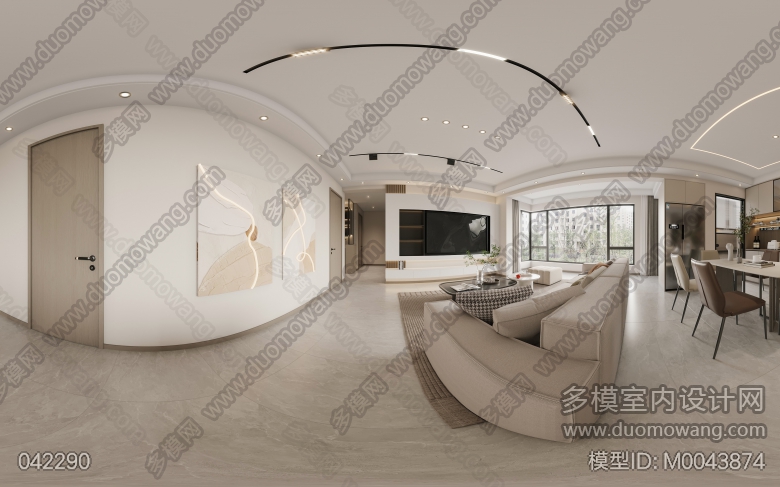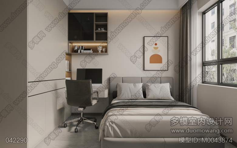 现代客餐厅+主卧+次卧+次卧1+书房 ID:M0043874
