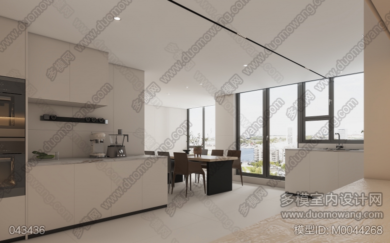 紫薇公馆 现代风格客餐厅全景+卧室全景+厨房玄关单张2张 全景送3张单张 ID:M0044268