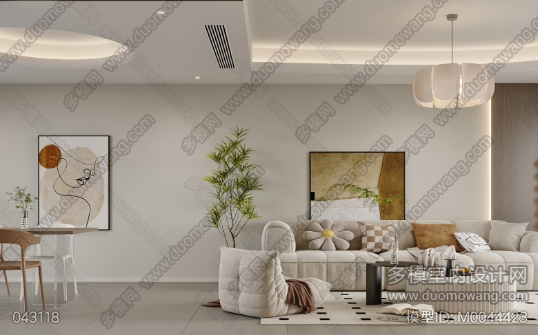 奶油风客餐厅全景1张,静态2张 ID:M0044423