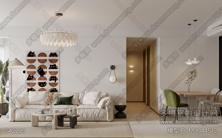 桂语朝阳现代现代客餐厅全景+2个卧室单张+3张特写{2023.12.19尾款}(后加厨房和榻榻米2个单张) ID:M0044512