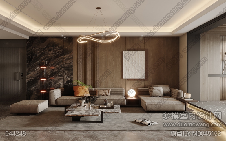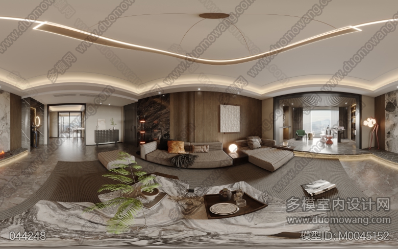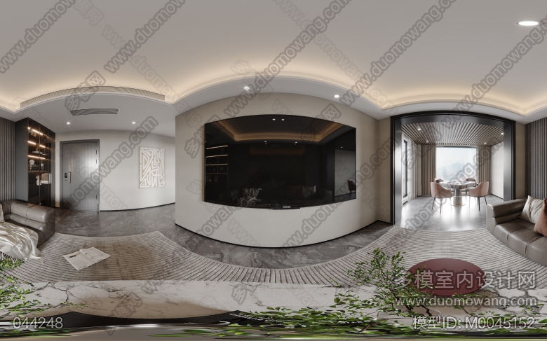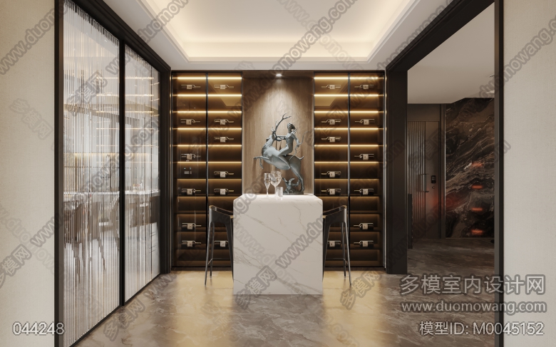 现代客餐厅+酒吧区+书房+影音室+主卧+衣帽间+女孩房(2023) ID:M0045152