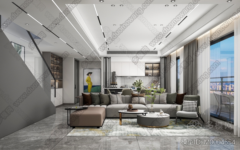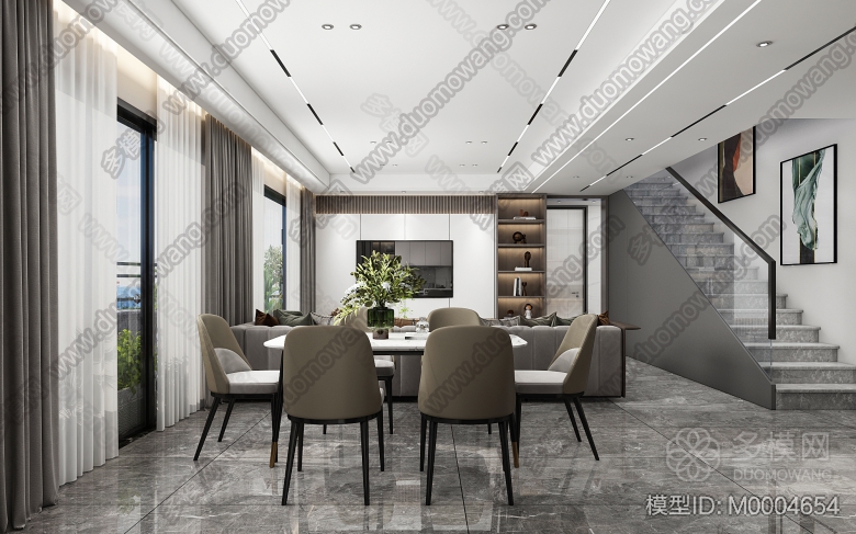 0073232现代家装客餐厅 主卧和次卧 书房 花园 ID:M0004654