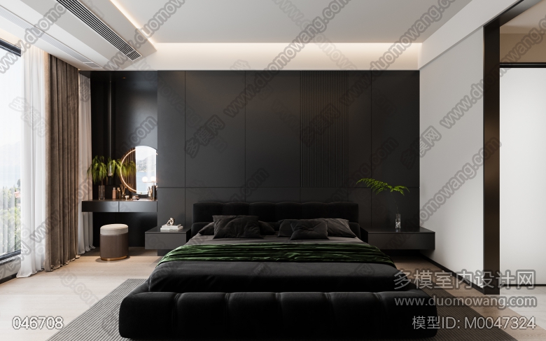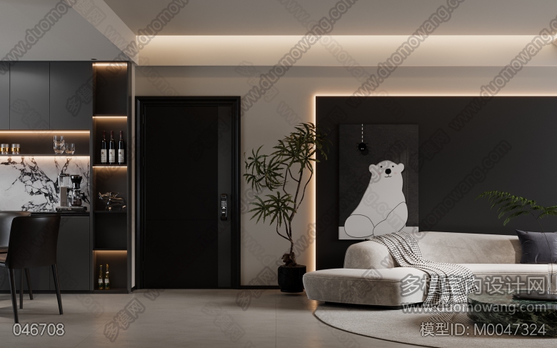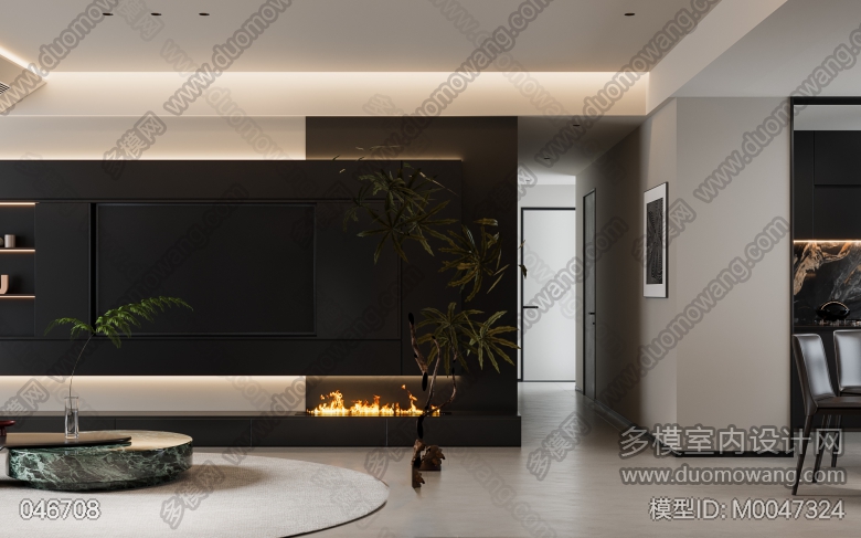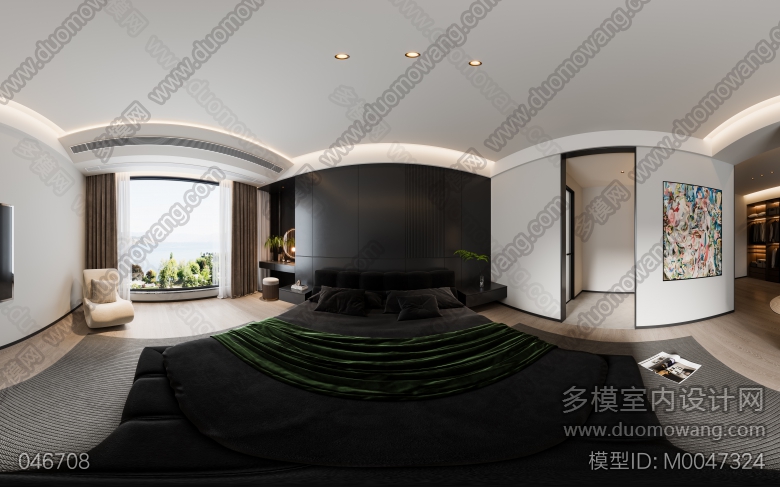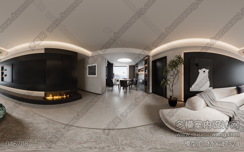 家装现代黑白灰风格3个全景 ID:M0047324