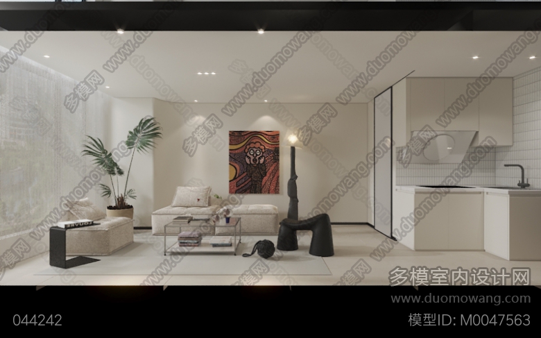 中交国际自贸中心现代奶油一楼客餐厅全景1个+二楼2张单张 ID:M0047563