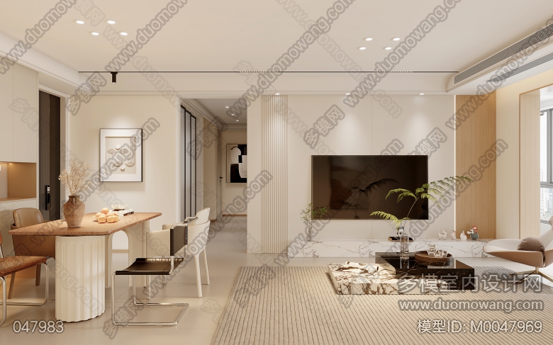 聚龙府4-1903现代奶油客餐厅2全景送5静态 ID:M0047969