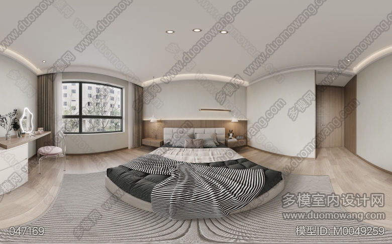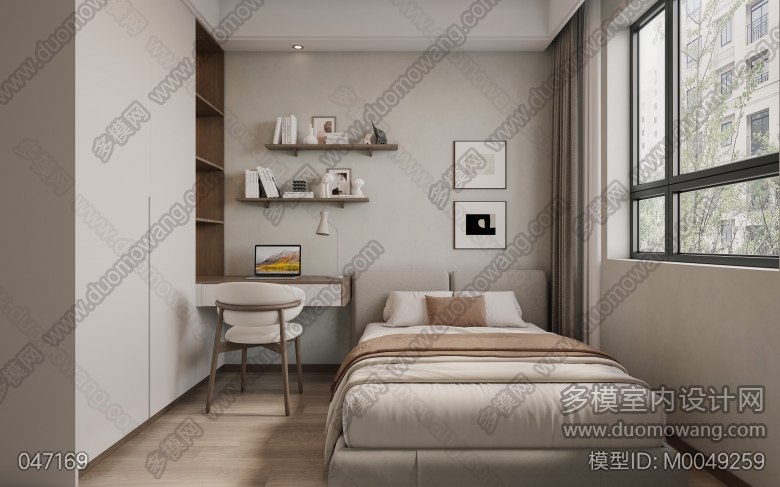 现代客餐厅+厨房+次卧+次卧1+卫生间+阳台+衣帽间+主卧 ID:M0049259