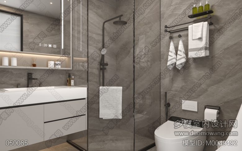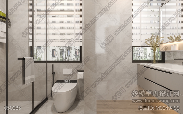 现代次卧室两个全景,两张卫生间静态 ID:M0049492
