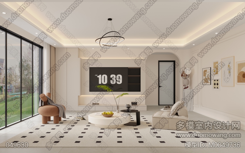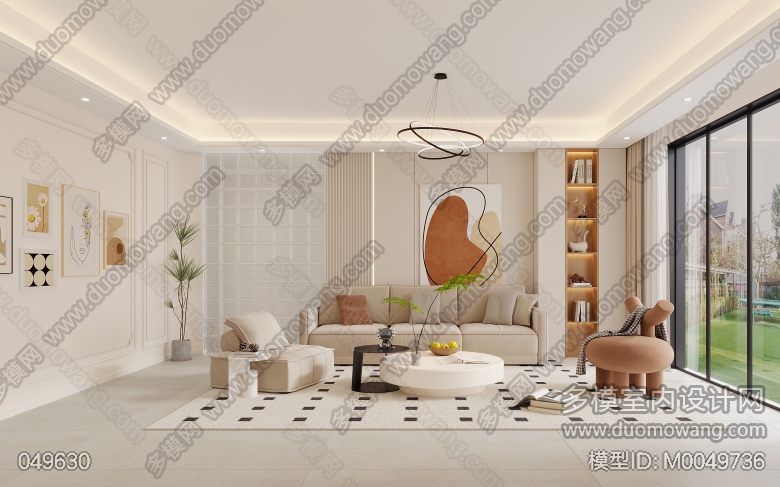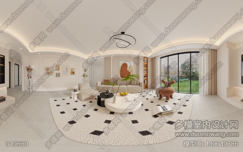 现代奶油风格2个全景。 ID:M0049736