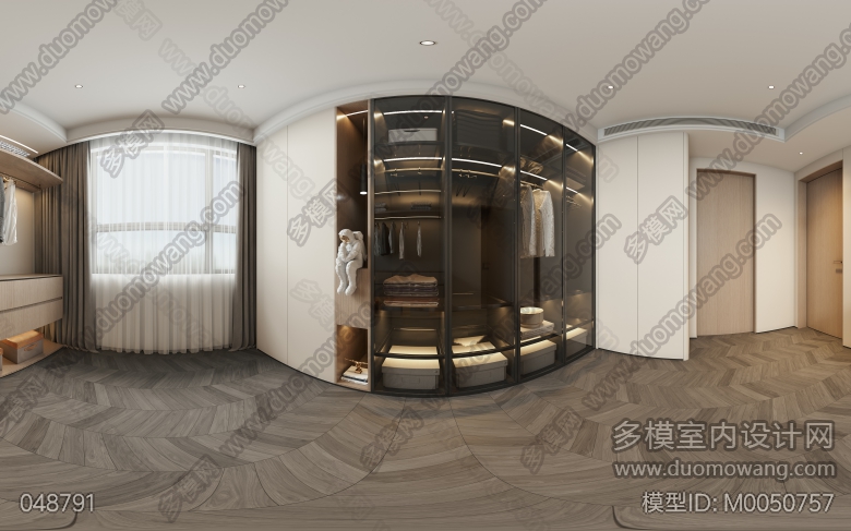 现代风格一张卧室单张+一张全景衣帽间 ID:M0050757