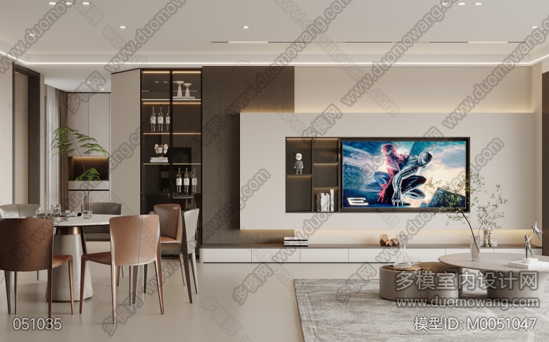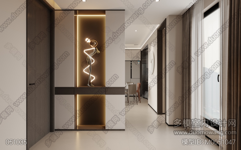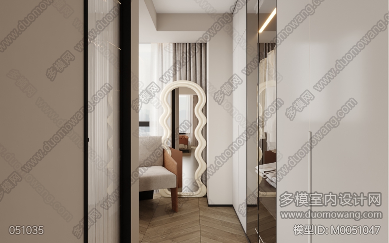 现代客餐厅+门厅+主卧+衣帽间改图 ID:M0051047