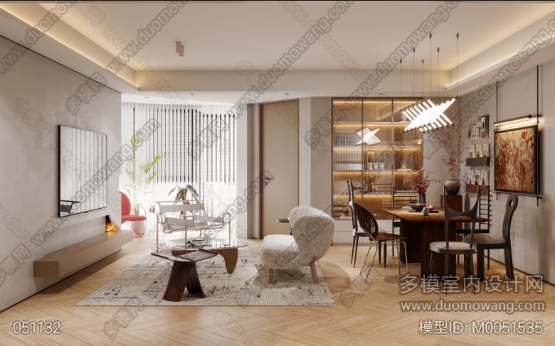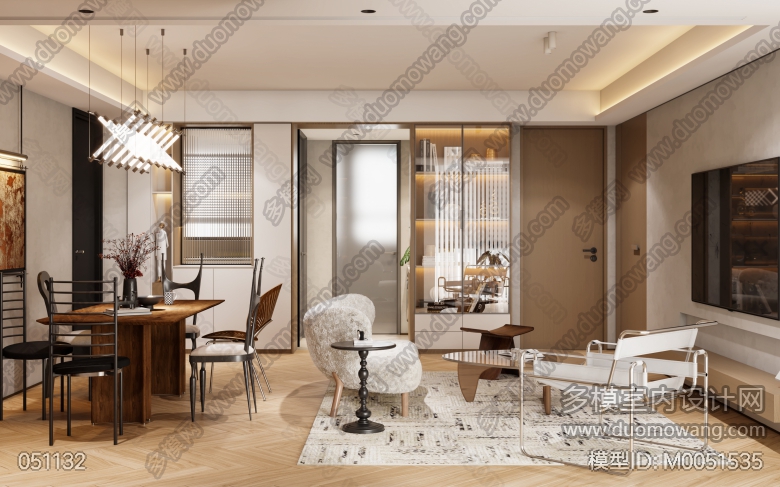 现代原木风客餐厅卧室 ID:M0051535