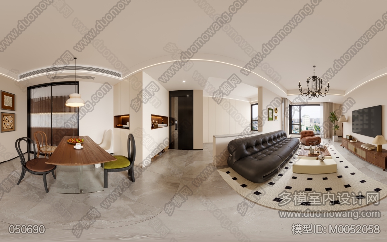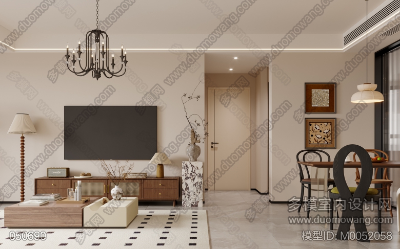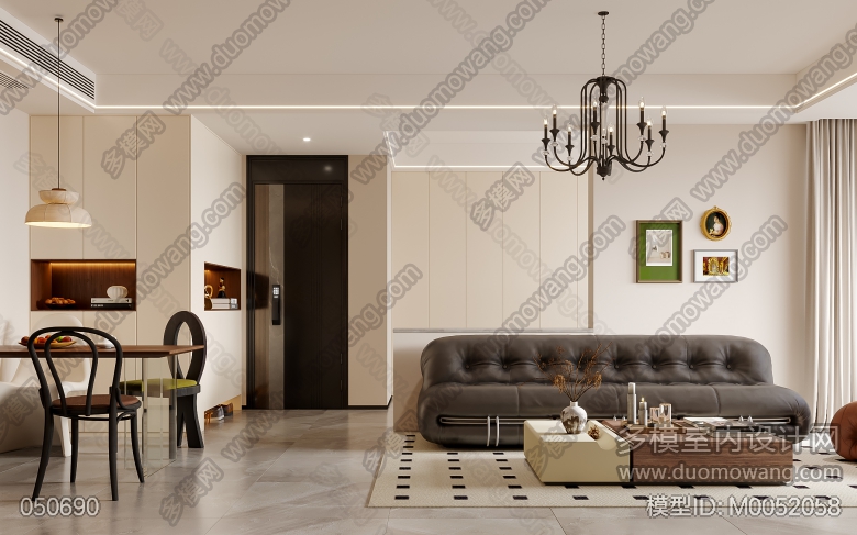 黑白灰加木色,现代风格客厅全景一个+特写2张 ID:M0052058