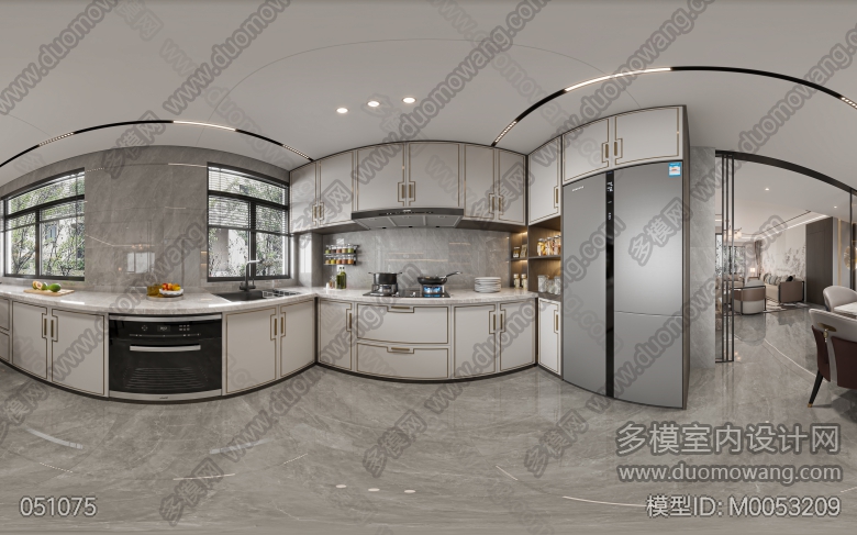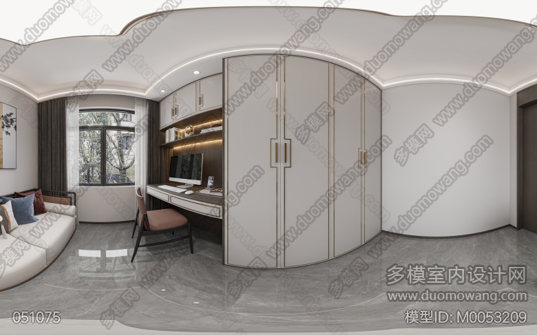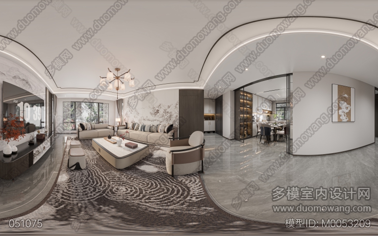 蓝山六期8#1-2301客厅厨房主卧:4张全景新中式 ID:M0053209