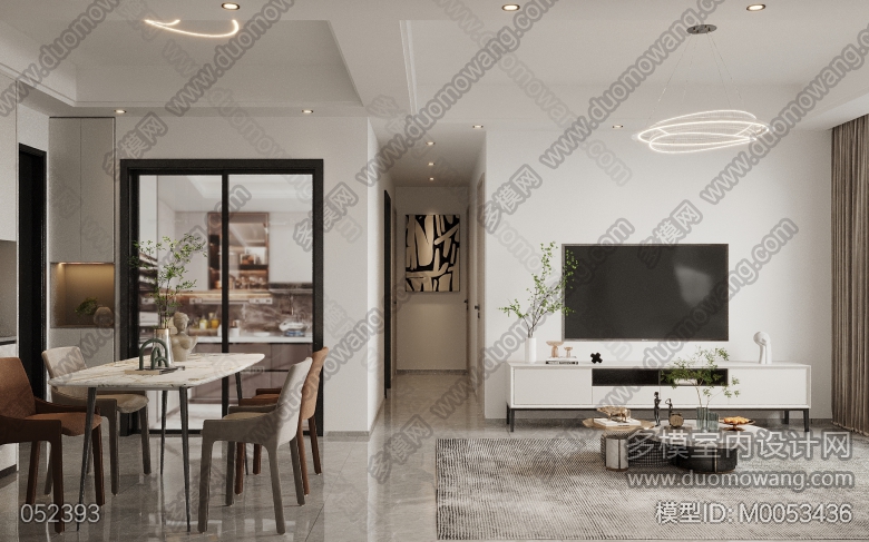 现代简约客餐厅全景送两张静态单张 ID:M0053436