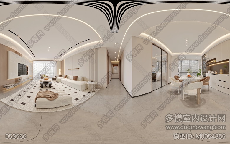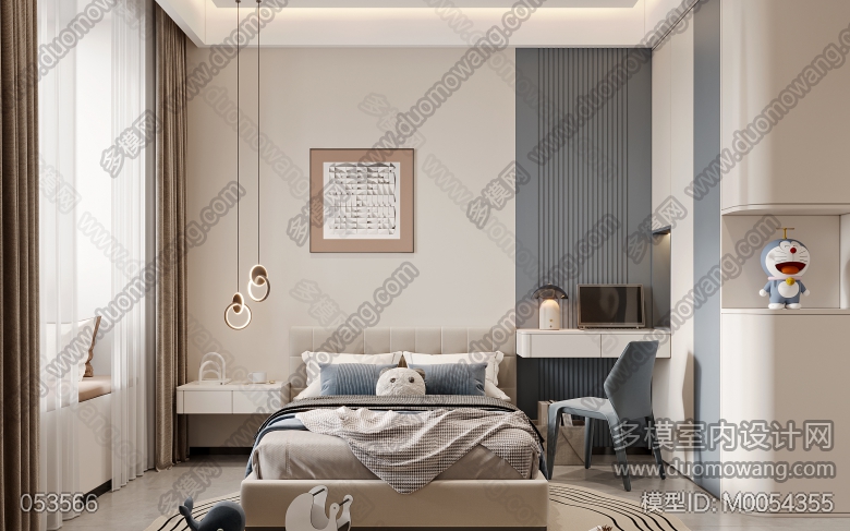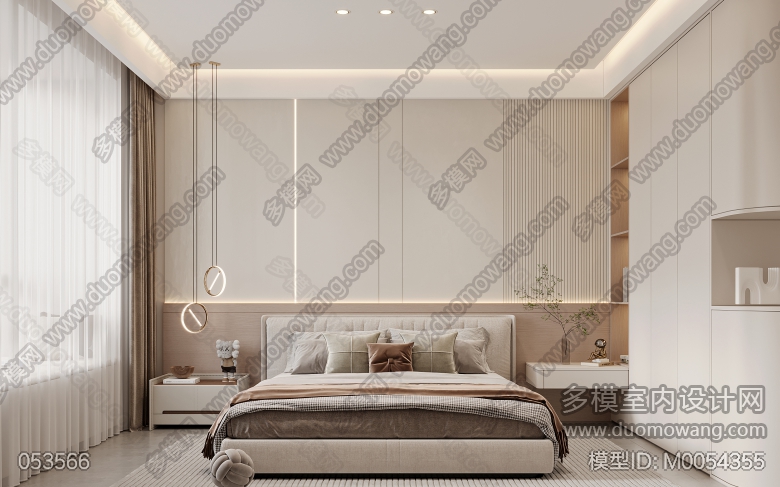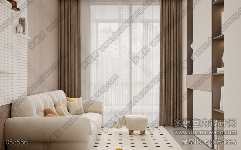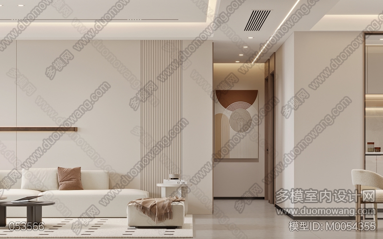 现代奶油客餐厅全景加三个卧室以及书房单张+赠送的两个单张 ID:M0054355